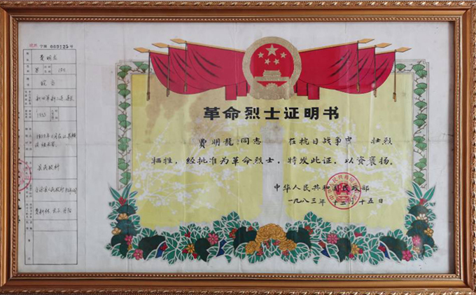 费明龙烈士为了救亡图存,变卖家产,流尽了自己最后一滴血,年仅29岁就长眠在马鞍山这块热土,祖国永远不会忘记他,人民永远不会忘记他!为了革命烈士的献身不被忘却,我们怀着崇敬地心情,来到当年英雄战斗过的地方,缅怀那闪光不息的生命!春风已解千层雪,后辈难忘先烈恩!站在新的历史起点上,我们纪念中国抗日战争的伟大胜利,就是要铭记历史、警示未来,就是要以史为鉴、面向未来,更加紧密地团结起来,肩负起历史重任,努力实现中华民族伟大复兴的中国梦,并以此告慰为抗日战争胜利献出生命的所有先烈,这是我们最好的纪念!人民英烈,永垂不朽!