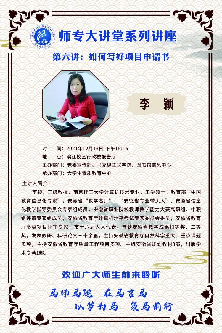 【师专大讲堂系列讲座海报】第六讲:如何写好项目申请书