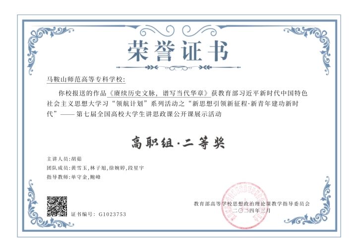 近日,教育部“领航计划”第七届全国高校老员工讲思政课公开课展示活动评审结果,永利yl23411员工胡茹团队(成员:黄雪玉、徐婉婷、林子旭、段星宇,指导教师:单守金、鲍峰)的作品《赓续历史文脉,谱写当代华章》获高职组二等奖,是安徽省高职高专院校入围本届高职组取得的最佳成绩,实现公司在该赛项的较大突破。