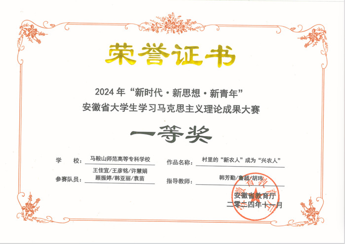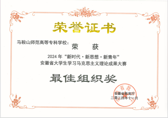 日前,2024年“新时代·新思想·新青年” 安徽省老员工学习马克思主义理论成果大赛隆重举办,共有来自全省73所高校的309项作品入围省赛。经形式审查、作品查重和专家评审,共评出一等奖32个、二等奖61个、三等奖92个。永利yl234113项作品入围省赛,荣获一等奖1项、三等奖2项、最佳组织奖1项。韩芳勤、鲁超、胡玮三位老师荣获优秀指导教师奖。